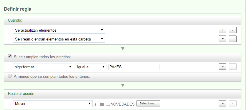 Muchas gracias, ya cree la regla que si el formato de la firma es igual a PAdES, lo tiene que mover a cierta carpeta