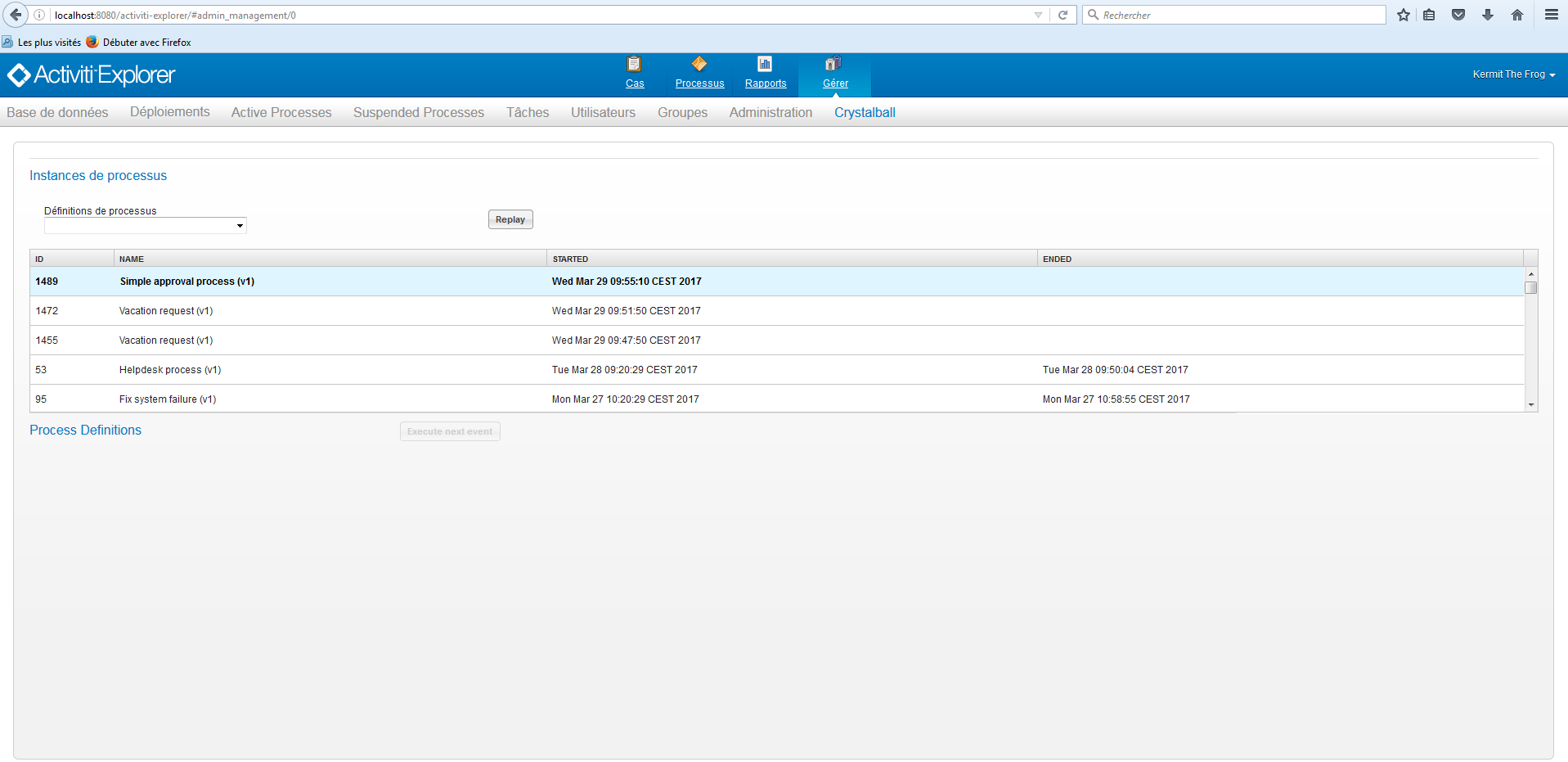 I have problems using Crystalball in activiti explorer (activiti-5.22.0). I check my process instance and clicked replay but nothing seems to happen. Can someone please help me.
